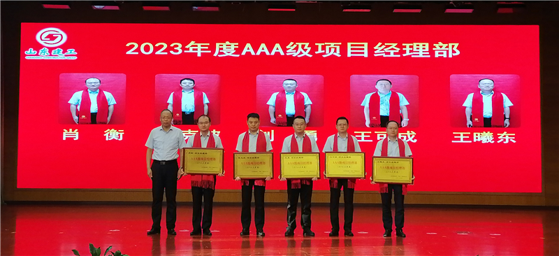 會議第二階段是表彰儀式,集團副董事長師厚紀宣讀表彰決定,集團領導分別為AAA級項目經理部、AAA級項目經理頒獎。AAA級項目經理集體誦讀《集團項目經理行為規范》。