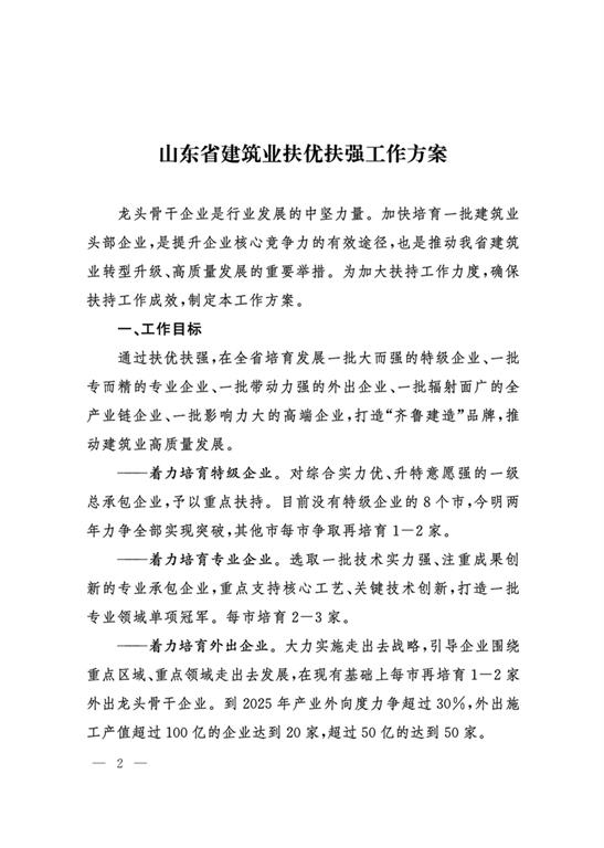 山東省住房和城鄉建設廳關于印發山東省建筑業扶優扶強工作方案的通知
